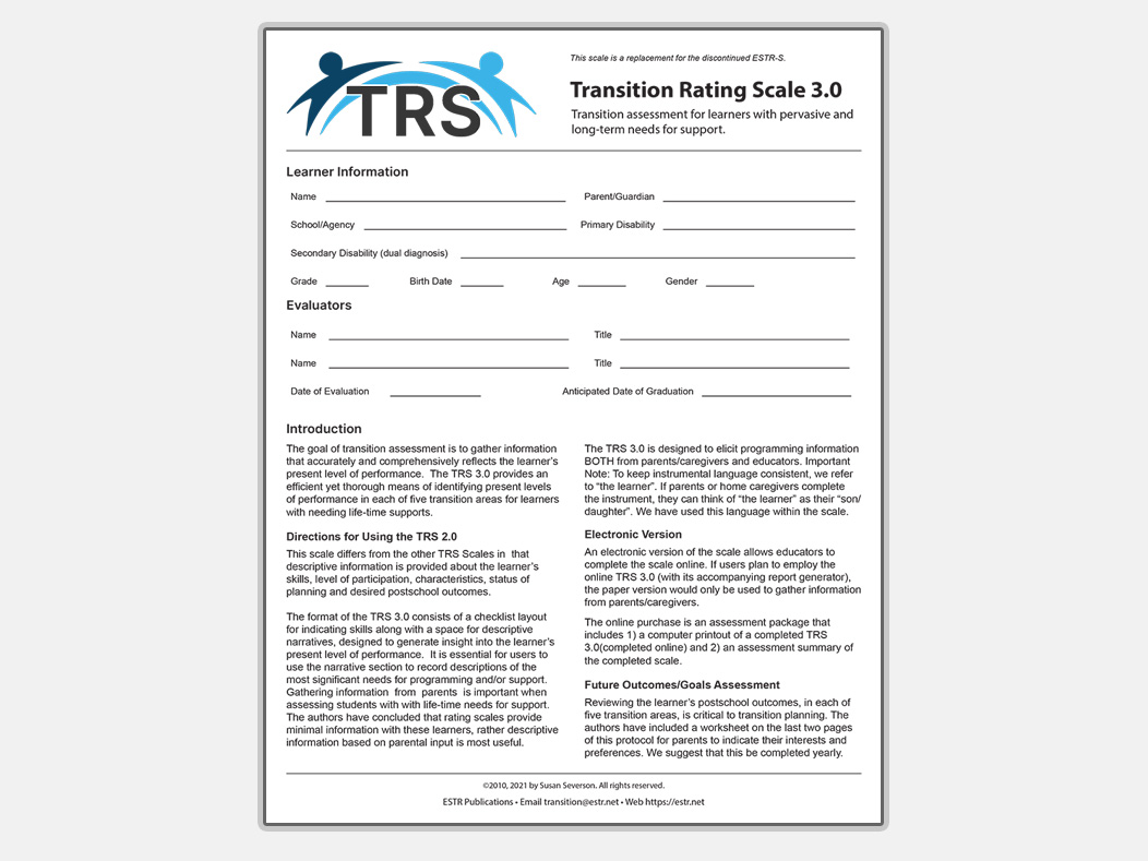 A TRS 2.0 Parent Form is available to gather information from parents/givers.